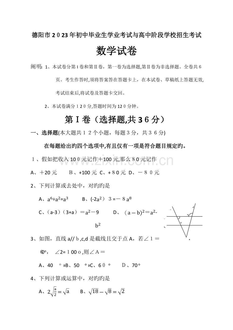 德阳市2023年初中毕业生学业考试与高中阶段学校招生考试