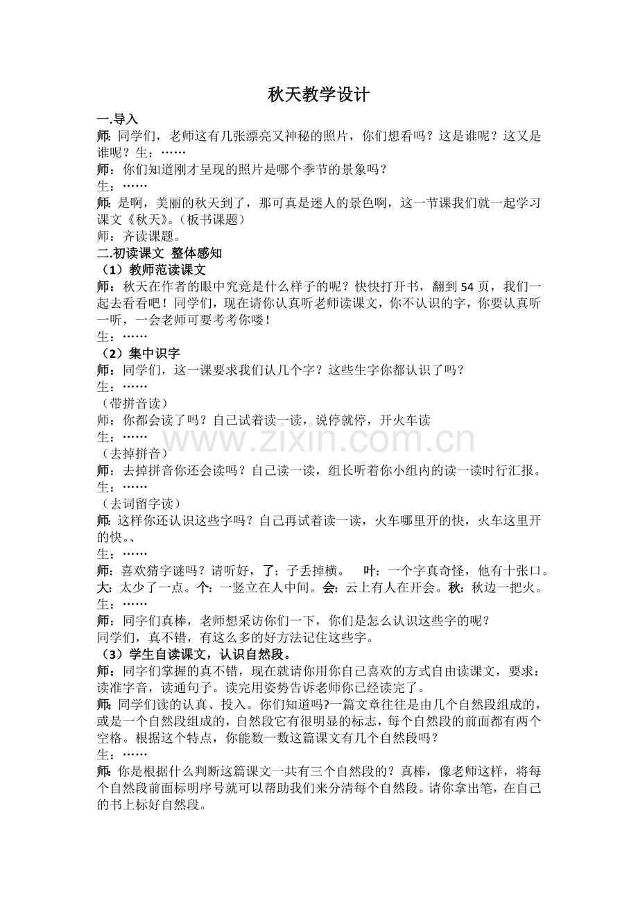 师:是啊,美丽的秋天到了,那可真是迷人的景色啊,这一节课我们就一起学习课文《秋天》。(板书课题)