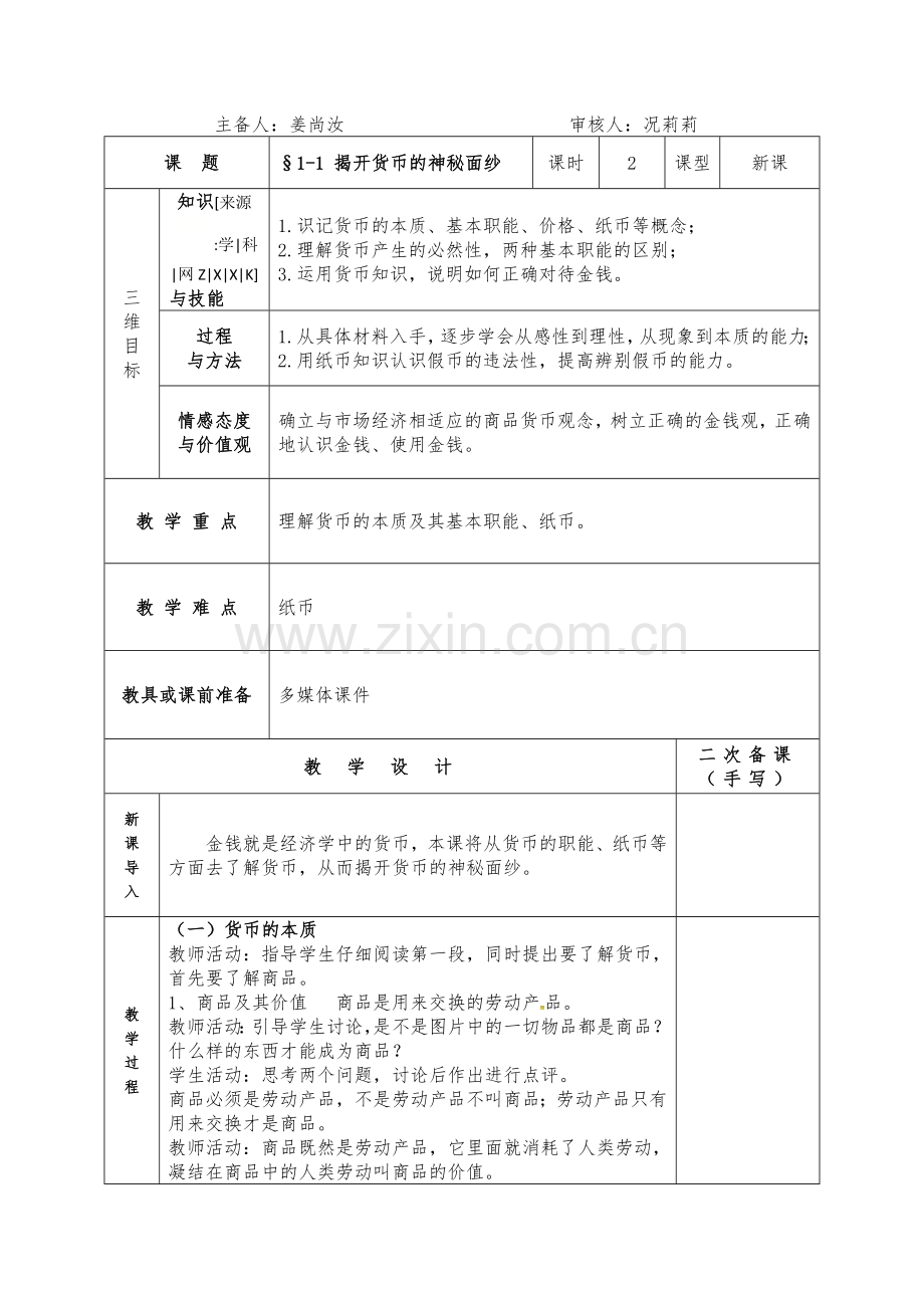 1.识记货币的本质、基本职能、价格、纸币等概念;