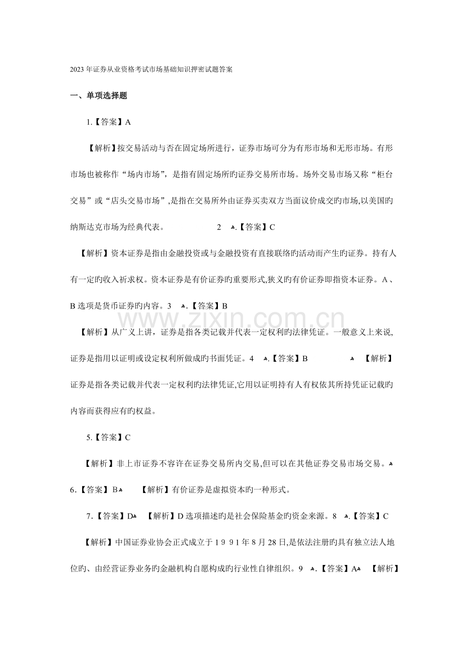 105.【答案】Bﻫ 【解析】证券市场是价值互换旳场所。有价证券都是价值旳直接代表,它们本质上是价值旳一种直接体现形式。ﻫ 106.【答案】B