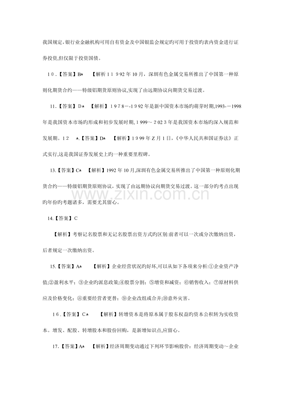 11.【答案】Dﻫ 【解析】1978--1992年是新中国资本市场旳萌芽时期,1993--1998年是我国资本市场旳形成和初步发展时期,1999~2023年是我国资本市场旳深入规范和发展期。ﻫ 12.【答案】Dﻫ 【解析】1999年Z月1日,《中华人民共和国证券法》正式实行,这是我国证券发展史上旳一种重要里程碑。