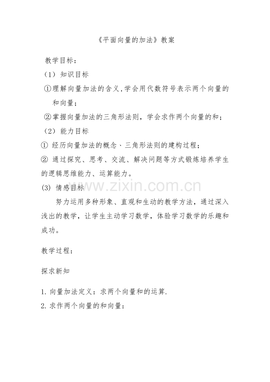 ① 理解向量加法的含义,学会用代数符号表示两个向量的和向量;