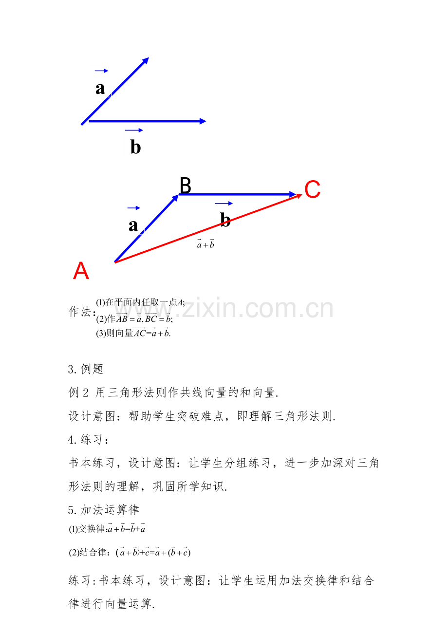 练习:书本练习,设计意图:让学生运用加法交换律和结合律进行向量运算.