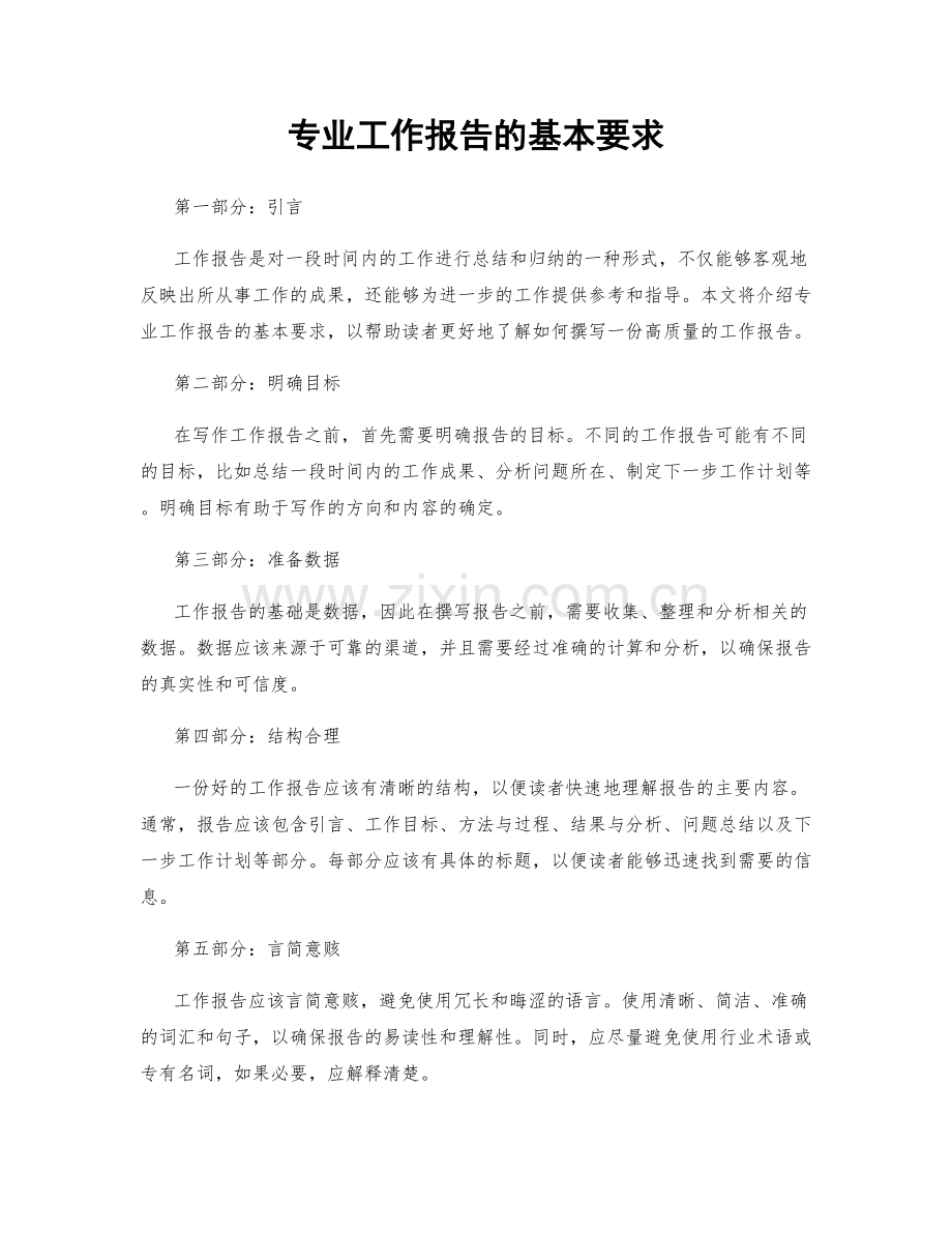 工作报告是对一段时间内的工作进行总结和归纳的一种形式,不仅能够客观地反映出所从事工作的成果,还能够为进一步的工作提供参考和指导。本文将介绍专业工作报告的基本要求,以帮助读者更好地了解如何撰写一份高质量的工作报告。
