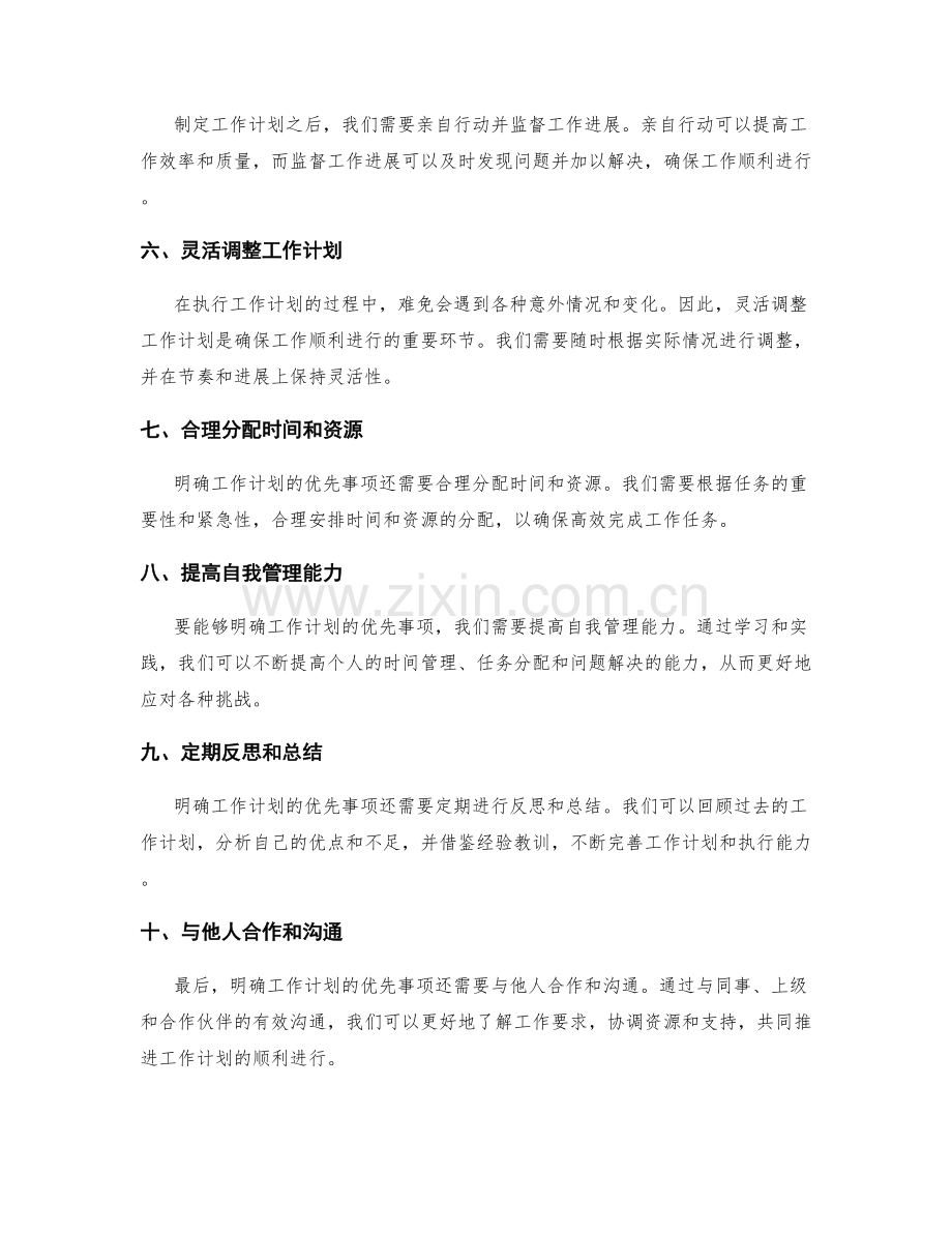最后,明确工作计划的优先事项还需要与他人合作和沟通。通过与同事、上级和合作伙伴的有效沟通,我们可以更好地了解工作要求,协调资源和支持,共同推进工作计划的顺利进行。