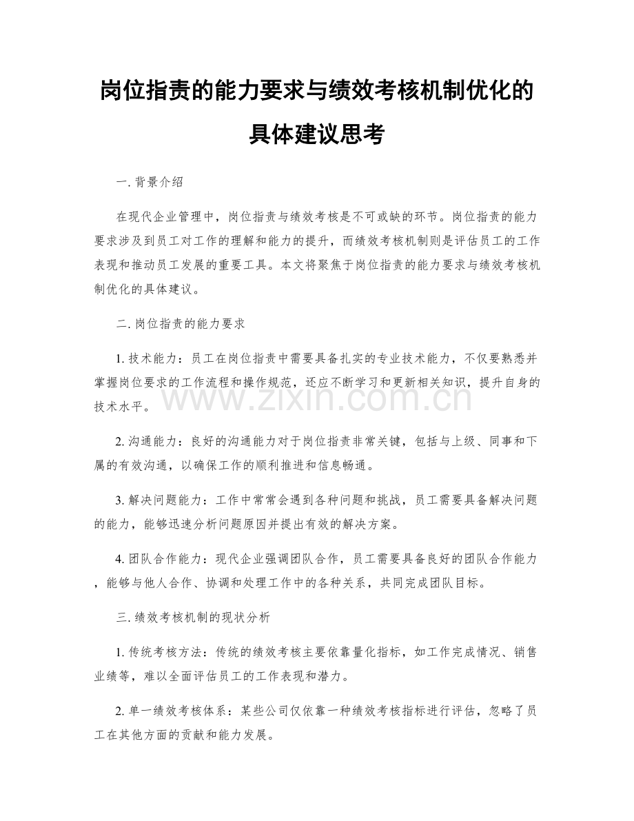 岗位指责的能力要求与绩效考核机制优化的具体建议思考