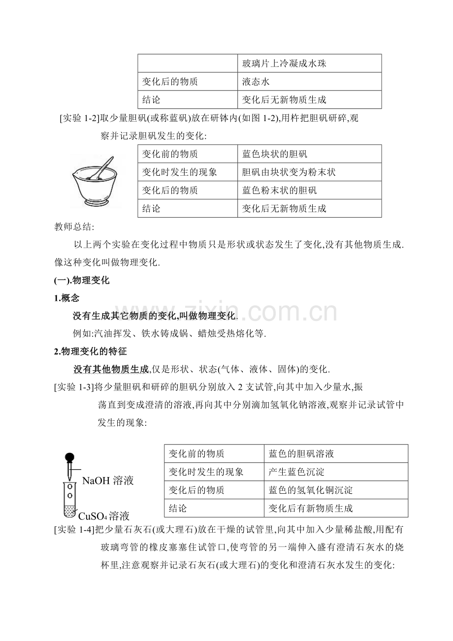 1.1.了解物理变化和化学变化的概念并能判断日常生活中一些物质的变化.