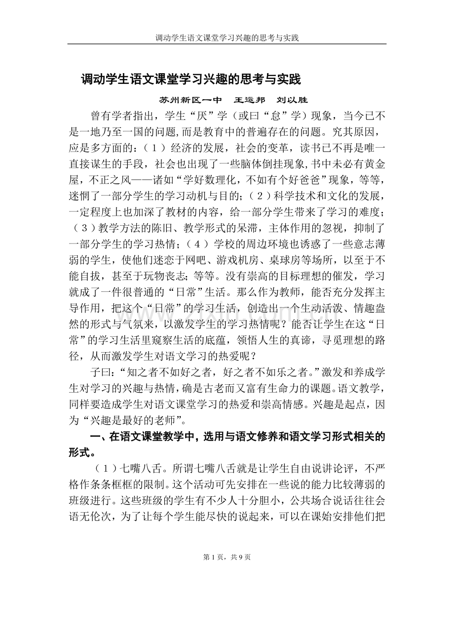 一、在语文课堂教学中,选用与语文修养和语文学习形式相关的形式。