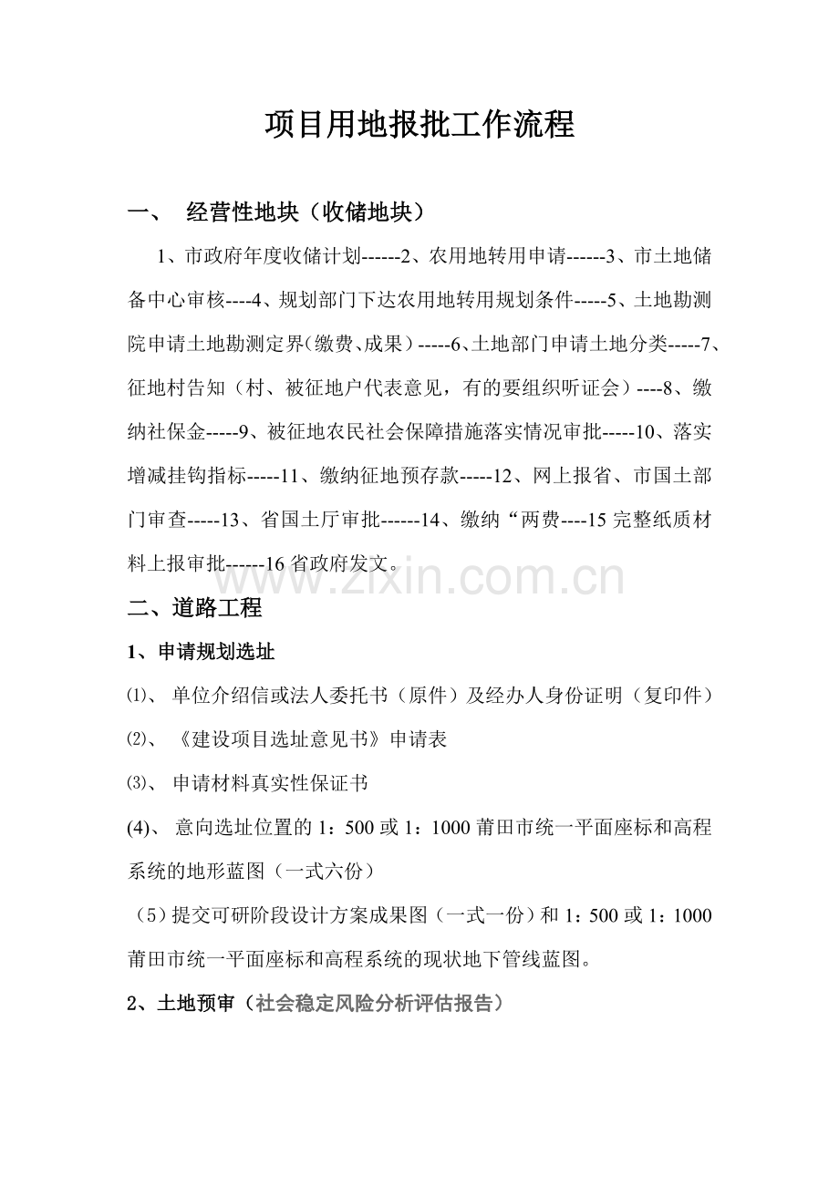 项目用地报批工作流程