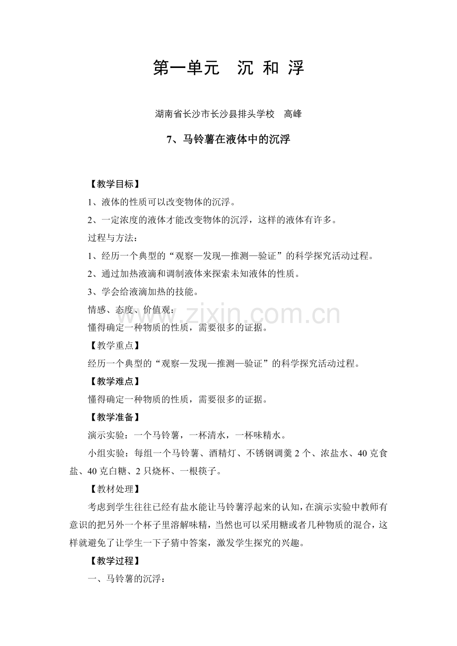 (2)把马铃薯轻轻放人清水中,观察它的沉浮状况。