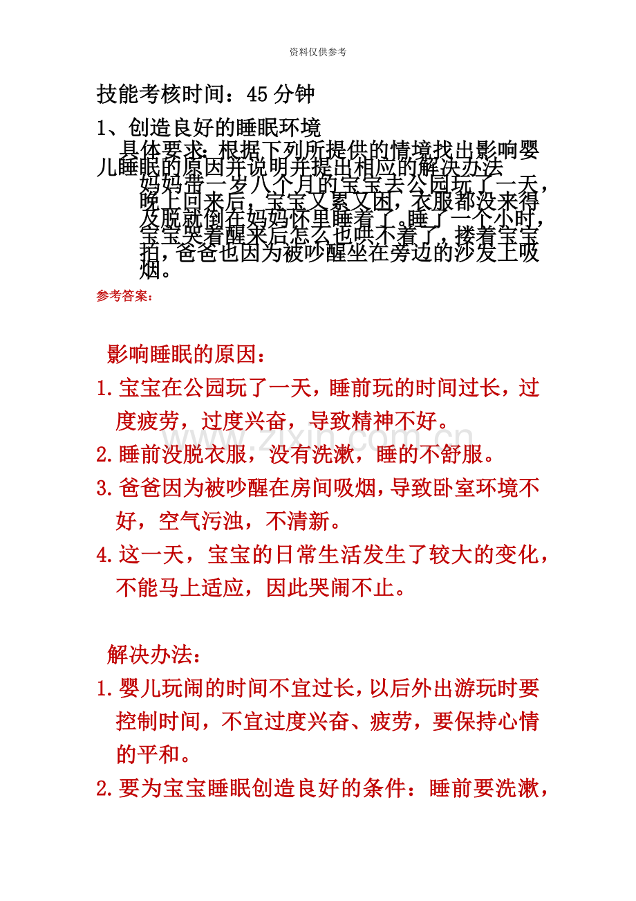 具体要求:根据下列所提供的情境找出影响婴儿睡眠的原因并说明并提出相应的解决办法