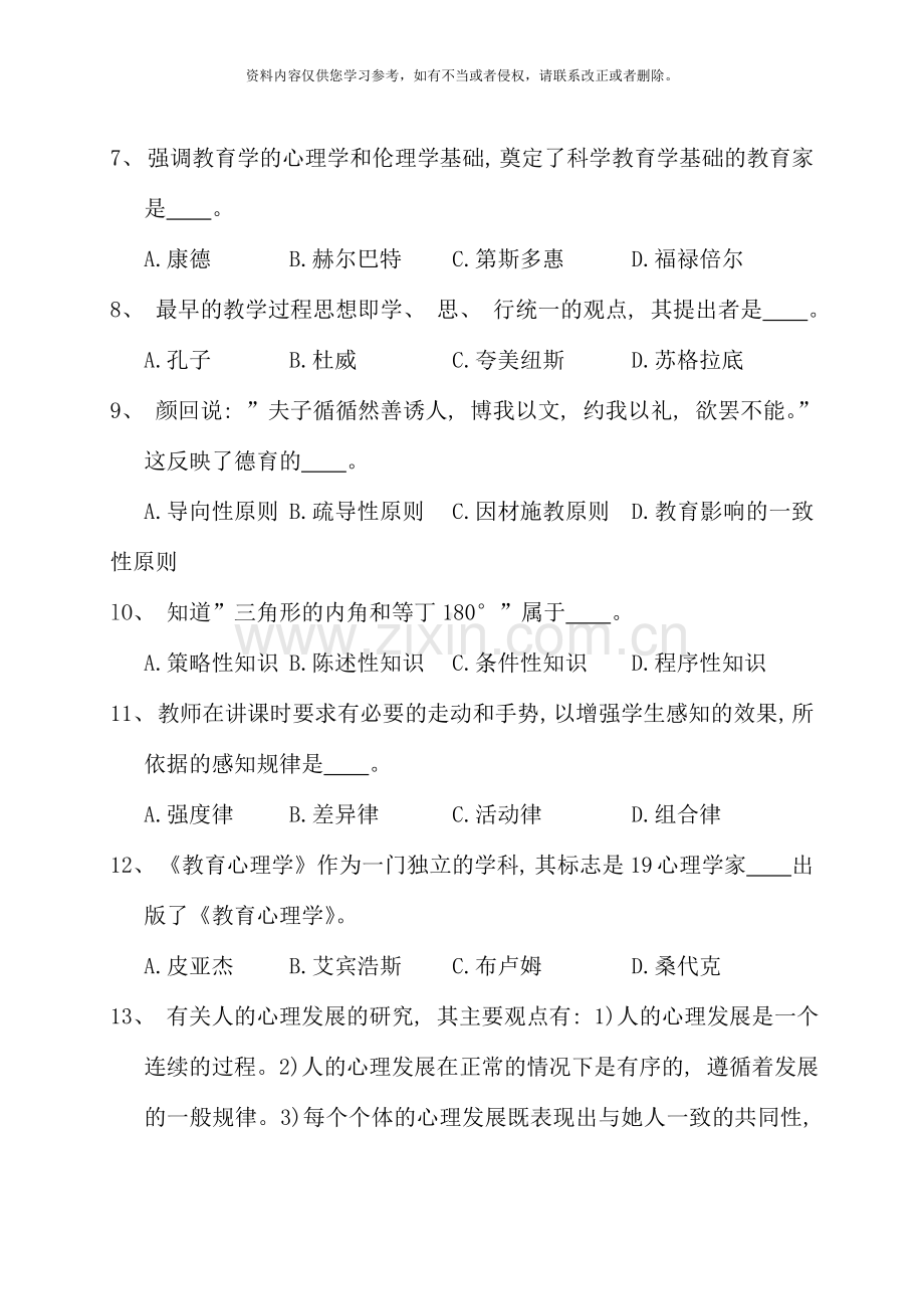 第一部分 教育学与教育心理学知识( 每小题1分, 共15分)