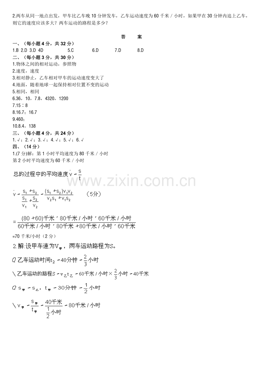 2.两车从同一地点出发,甲车比乙车晚10分钟发车,乙车运动速度为60千米/小时,如果甲在30分钟内追上乙车,则它的速度应该多大?两车运动的路程是多少?