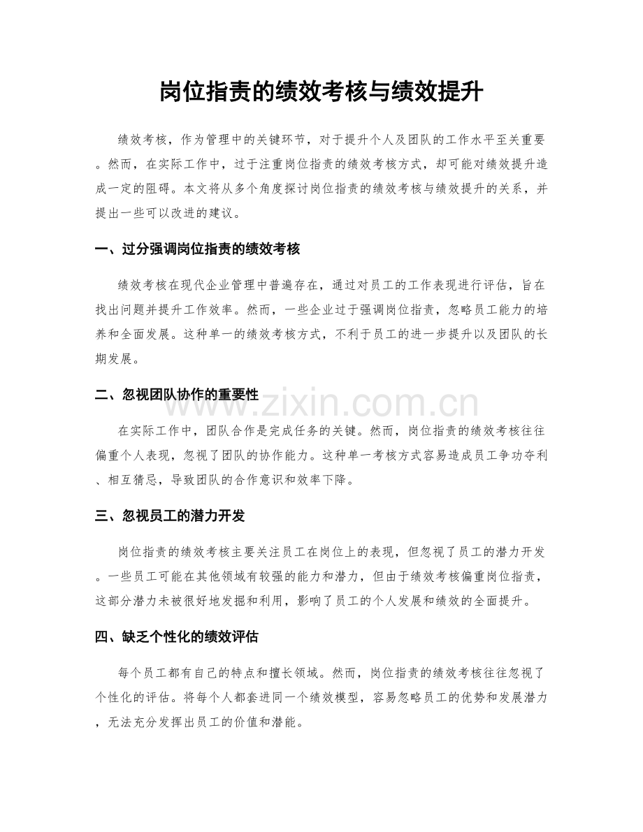 绩效考核,作为管理中的关键环节,对于提升个人及团队的工作水平至关重要。然而,在实际工作中,过于注重岗位指责的绩效考核方式,却可能对绩效提升造成一定的阻碍。本文将从多个角度探讨岗位指责的绩效考核与绩效提升的关系,并提出一些可以改进的建议。