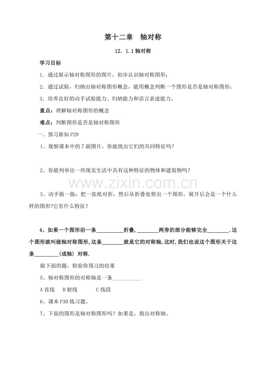 1、 通过动手实验,掌握关于某条直线成轴对称的两个图形的对应线段相等、对应角相等;