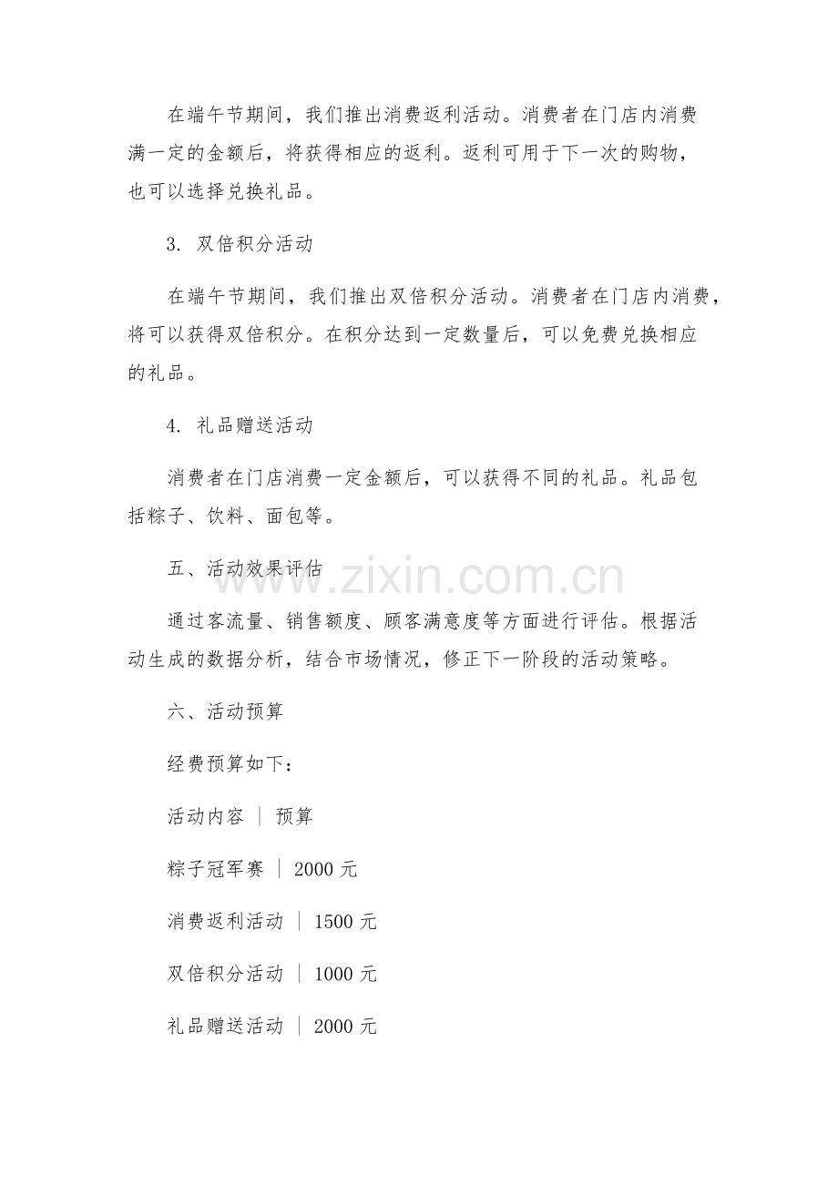 在端午节期间,我们推出消费返利活动。消费者在门店内消费满一定的金额后,将获得相应的返利。返利可用于下一次的购物,也可以选择兑换礼品。