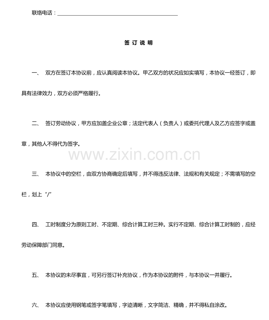 六、 本协议应使用钢笔或签字笔填写,字迹清晰,文字简洁、精确,并不得私自涂改。