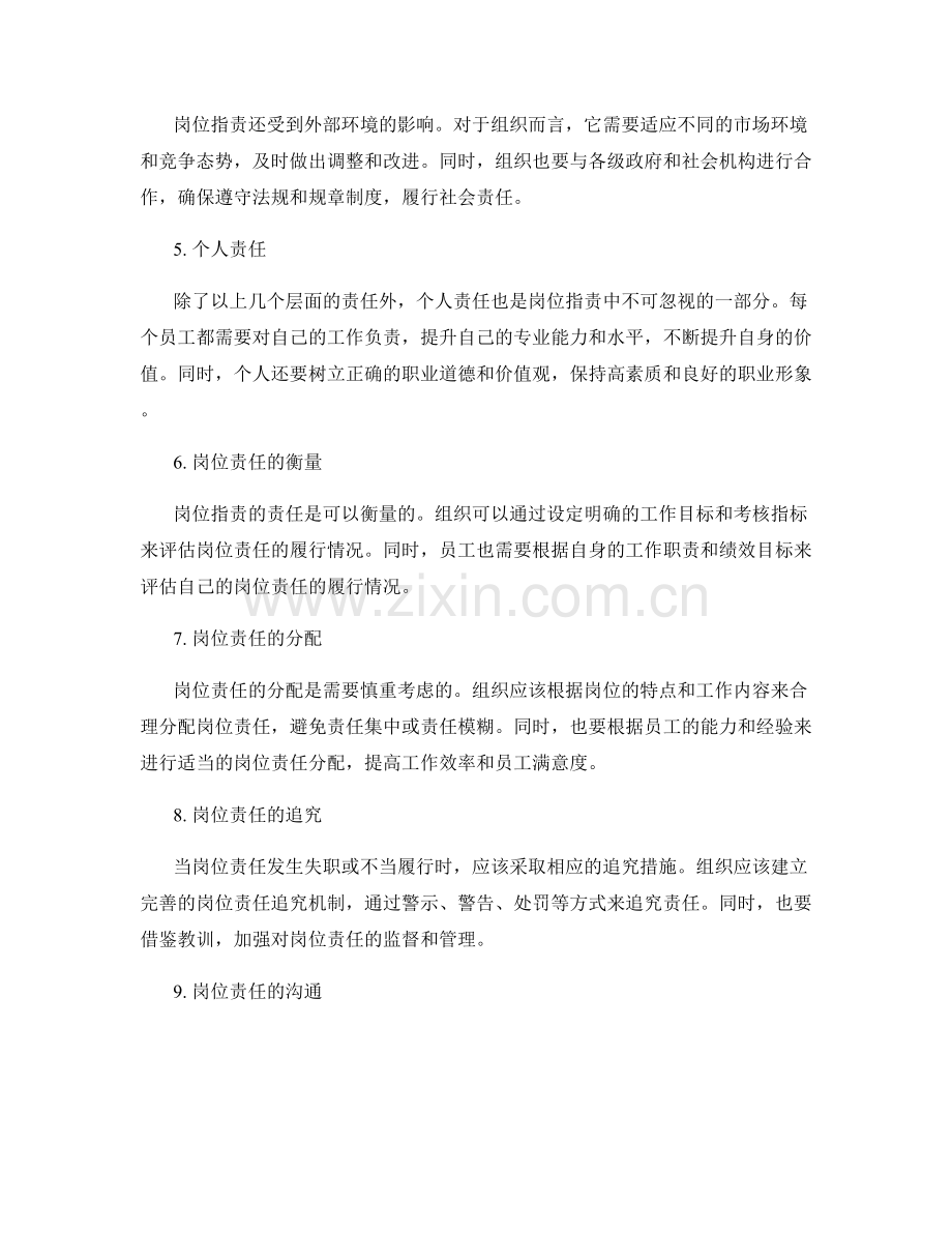 除了以上几个层面的责任外,个人责任也是岗位指责中不可忽视的一部分。每个员工都需要对自己的工作负责,提升自己的专业能力和水平,不断提升自身的价值。同时,个人还要树立正确的职业道德和价值观,保持高素质和良好的职业形象。