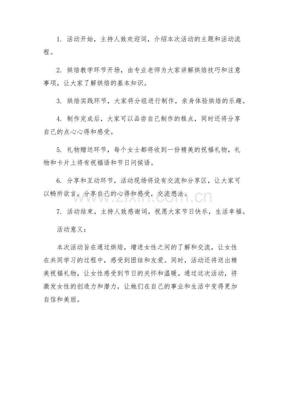 本次活动旨在通过烘焙,增进女性之间的了解和交流,让女性在共同学习的过程中,感受到团结和友爱。同时,活动还将送出精美祝福礼物,让女性感受到节日的关怀和温暖。通过这次活动,将激发女性的创造力和潜力,让她们在自己的事业和生活中变得更加自信和美丽。