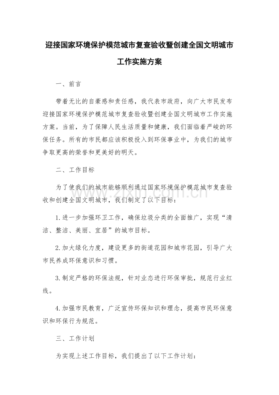 迎接国家环境保护模范城市复查验收暨创建全国文明城市工作实施方案