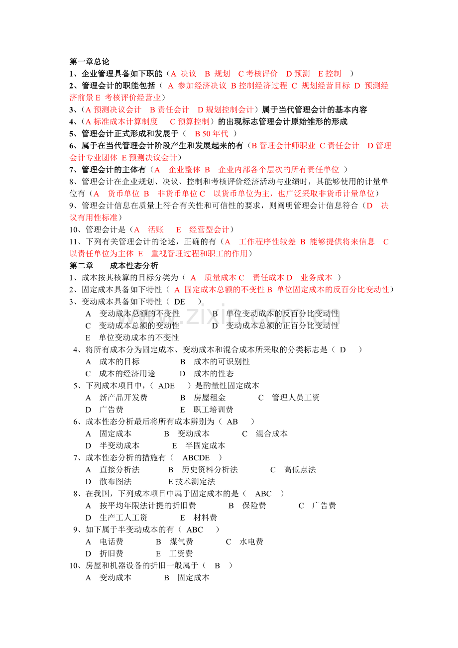 10、管理会计是(A 活账 E 经营型会计)