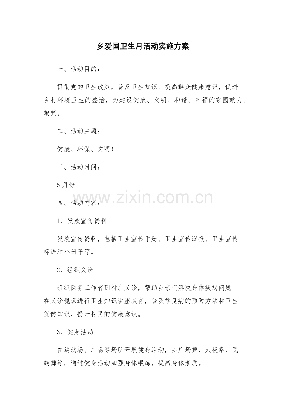 乡爱国卫生月活动实施方案