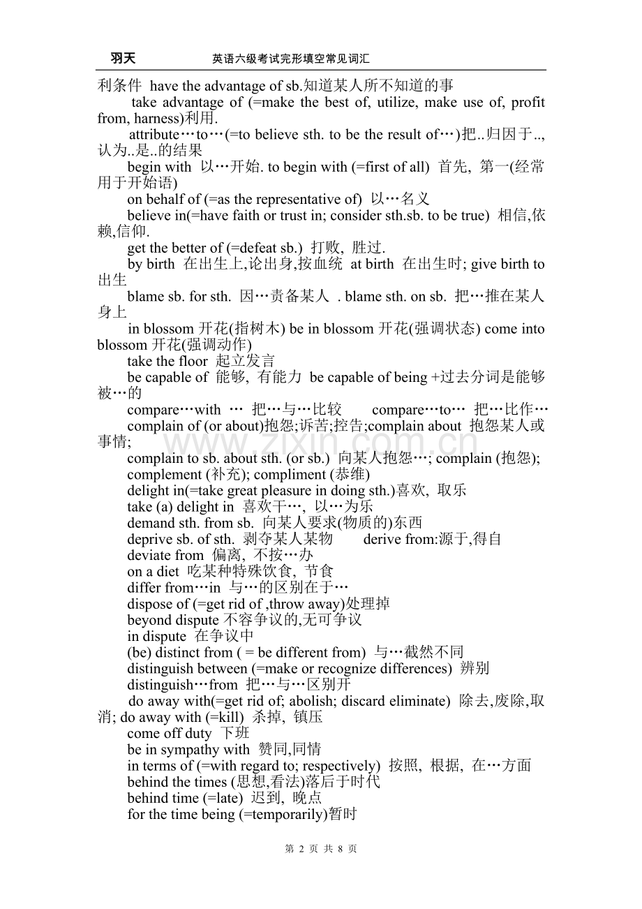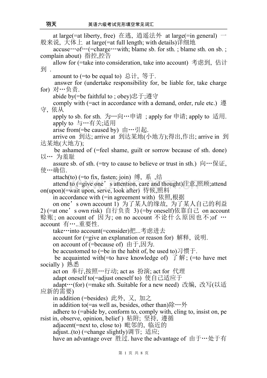 羽天 英语六级考试完形填空常见词汇