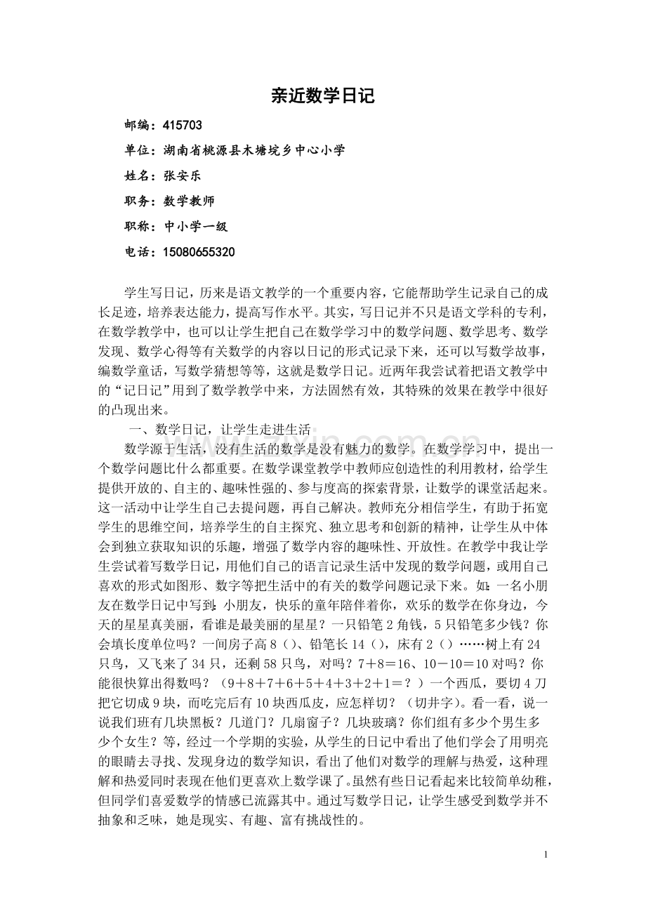 数学日记是课堂教学的延伸,让学生通过多种途径(如上网、查阅书籍、询问等),了解一些与所学知识相关的内容,并根据自己的理解以数学日记的形式表现出来,不仅拓宽学生的数学视野,而且能发展学生的实际应用能力。