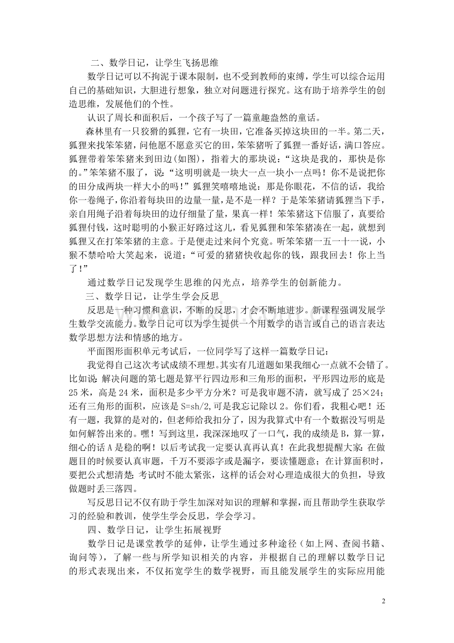 通过数学日记发现学生思维的闪光点,培养学生的创新能力。