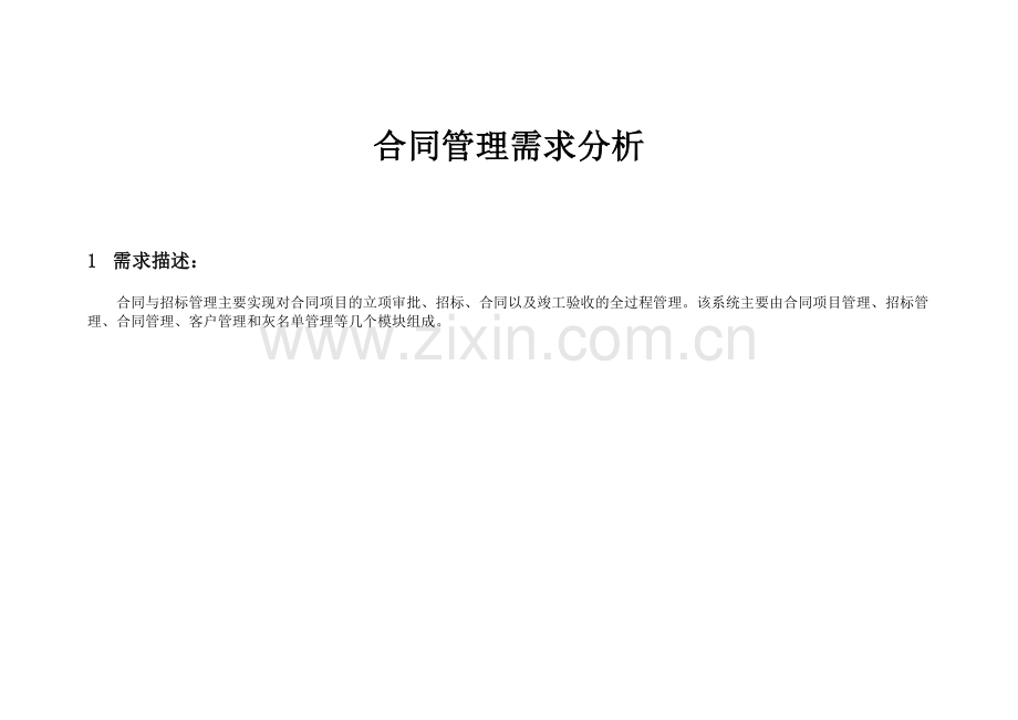 合同与招标管理主要实现对合同项目的立项审批、招标、合同以及竣工验收的全过程管理。该系统主要由合同项目管理、招标管理、合同管理、客户管理和灰名单管理等几个模块组成。