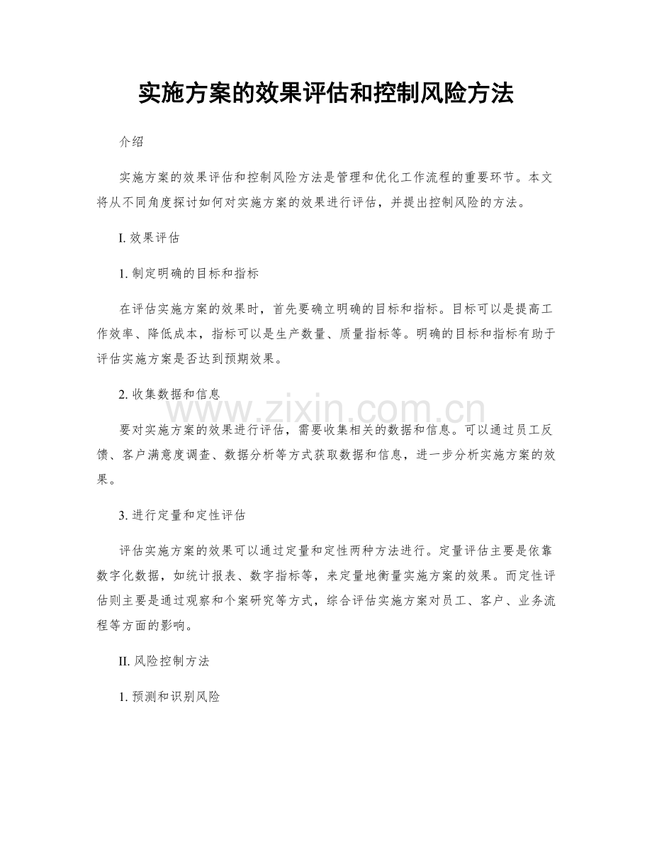 实施方案的效果评估和控制风险方法是管理和优化工作流程的重要环节。本文将从不同角度探讨如何对实施方案的效果进行评估,并提出控制风险的方法。