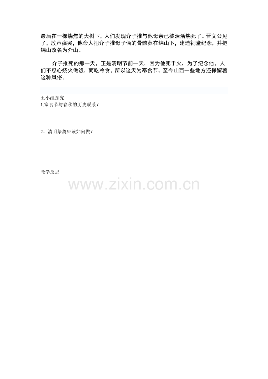 介子推死的那一天,正是清明节前一天,因为他死于火,为了纪念他,人们不忍心烧火做饭,而吃冷食,所以这天为寒食节。至今山西一些地方还保留着这种风俗。