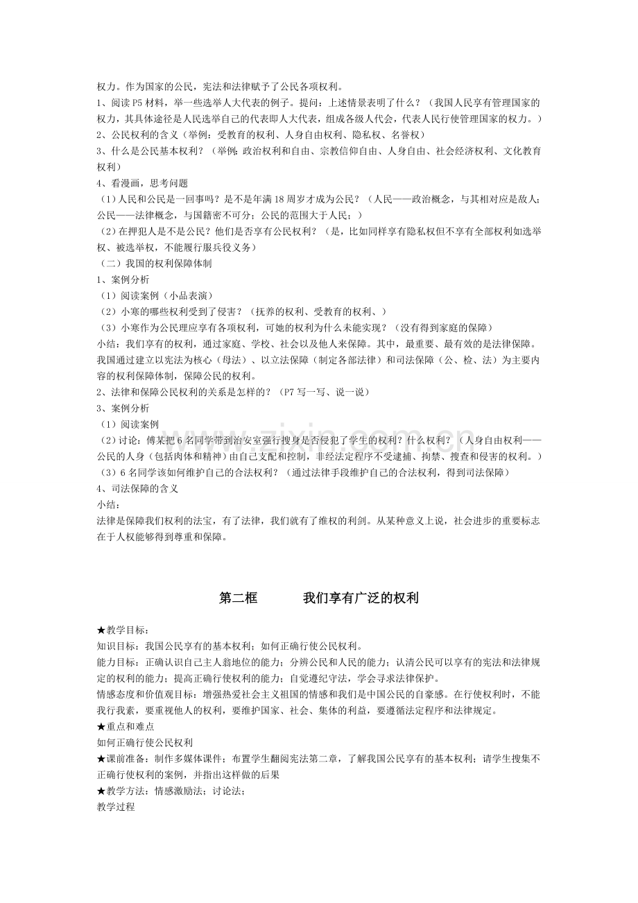 ★课前准备:制作多媒体课件;布置学生翻阅宪法第二章,了解我国公民享有的基本权利;请学生搜集不正确行使权利的案例,并指出这样做的后果