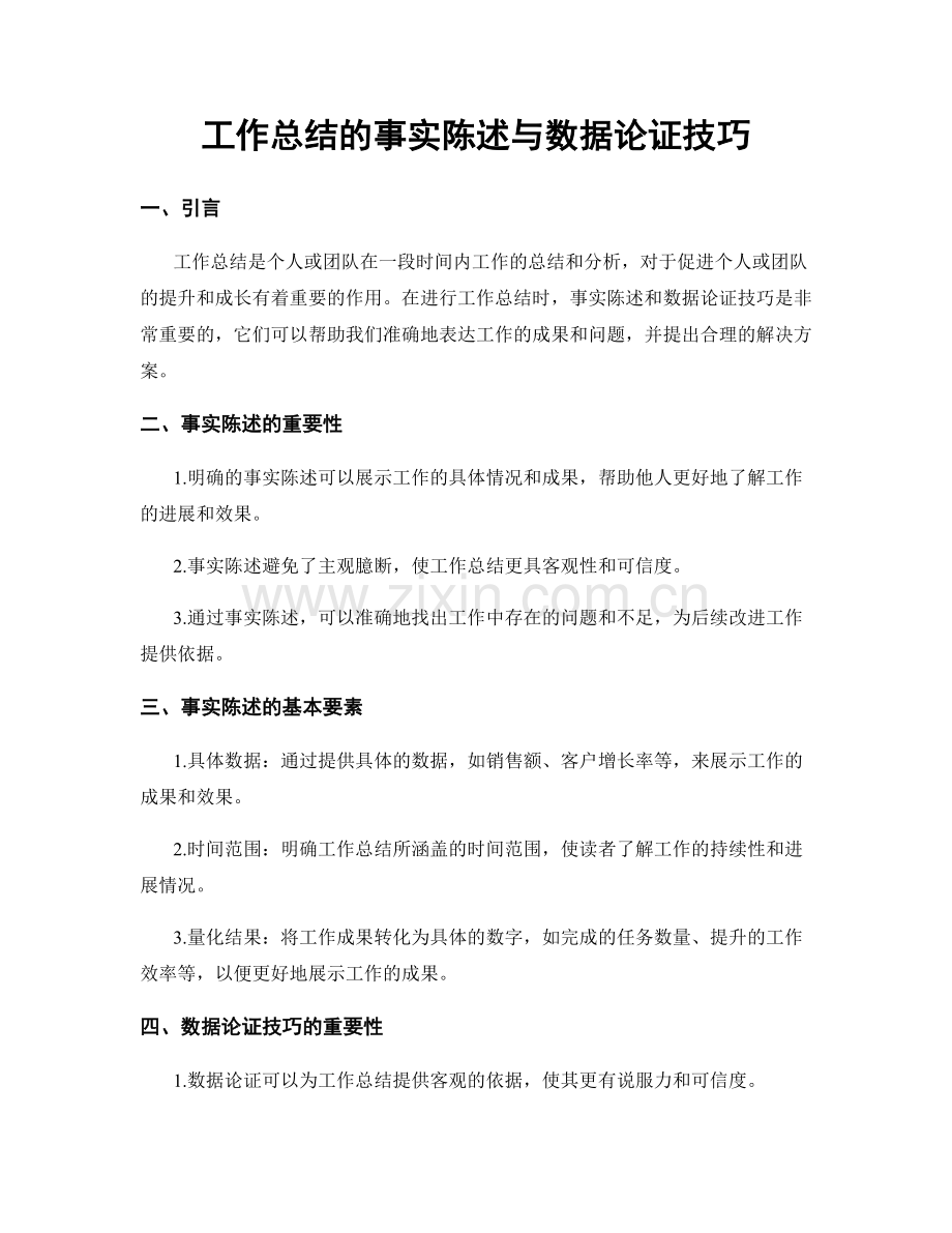 工作总结是个人或团队在一段时间内工作的总结和分析,对于促进个人或团队的提升和成长有着重要的作用。在进行工作总结时,事实陈述和数据论证技巧是非常重要的,它们可以帮助我们准确地表达工作的成果和问题,并提出合理的解决方案。
