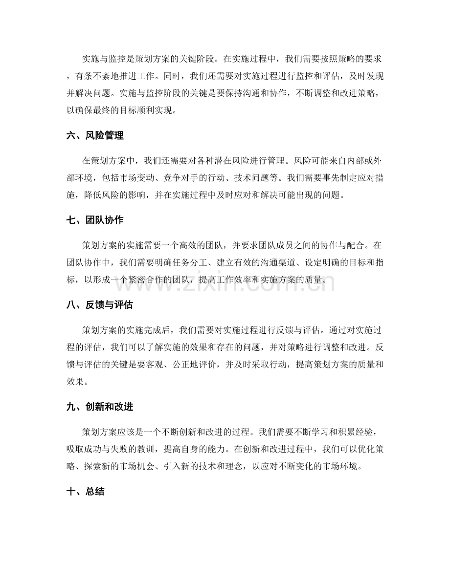 实施与监控是策划方案的关键阶段。在实施过程中,我们需要按照策略的要求,有条不紊地推进工作。同时,我们还需要对实施过程进行监控和评估,及时发现并解决问题。实施与监控阶段的关键是要保持沟通和协作,不断调整和改进策略,以确保最终的目标顺利实现。