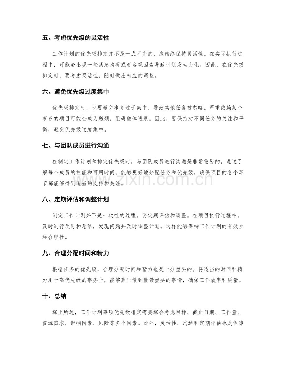 综上所述,工作计划事项优先级排定需要综合考虑目标、截止日期、工作量、资源需求、影响因素、风险等多个因素。此外,灵活性、沟通和定期评估也是保障计划有效性的重要环节。只有合理安排任务优先级,才能在有限的时间和资源内实现高效的工作。
