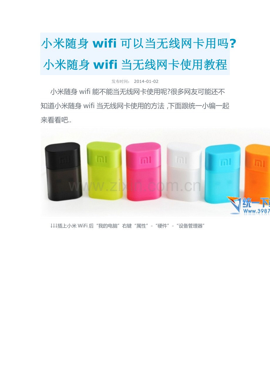 小米随身wifi能不能当无线网卡使用呢?很多网友可能还不知道小米随身wifi当无线网卡使用的方法,下面跟统一小编一起来看看吧..