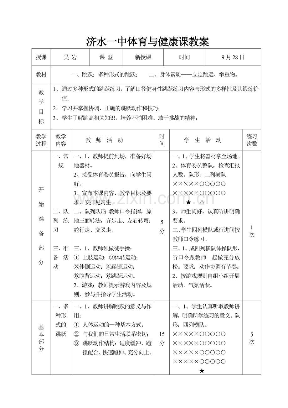 济水一中体育与健康课教案