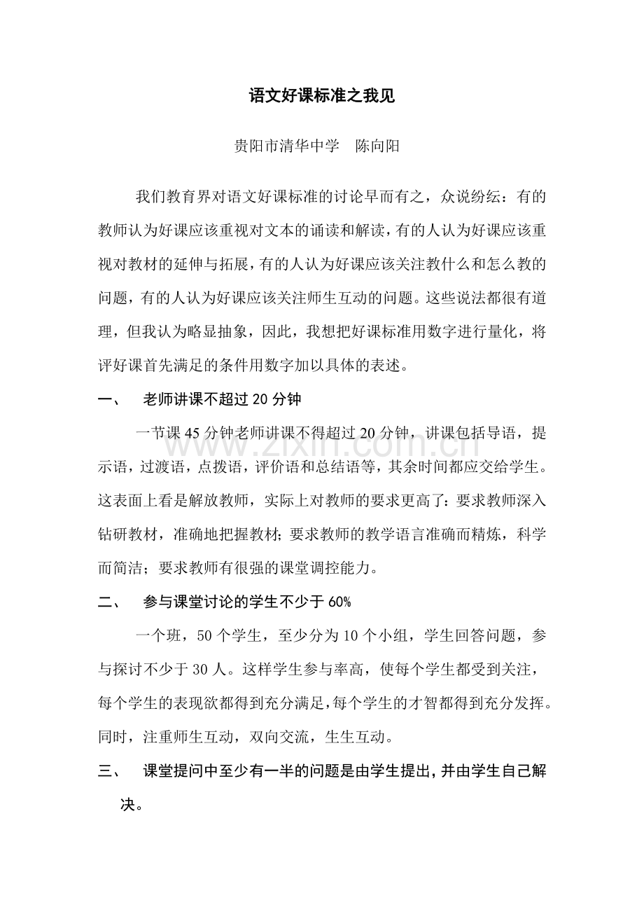 我们教育界对语文好课标准的讨论早而有之,众说纷纭:有的教师认为好课应该重视对文本的诵读和解读,有的人认为好课应该重视对教材的延伸与拓展,有的人认为好课应该关注教什么和怎么教的问题,有的人认为好课应该关注师生互动的问题。这些说法都很有道理,但我认为略显抽象,因此,我想把好课标准用数字进行量化,将评好课首先满足的条件用数字加以具体的表述。