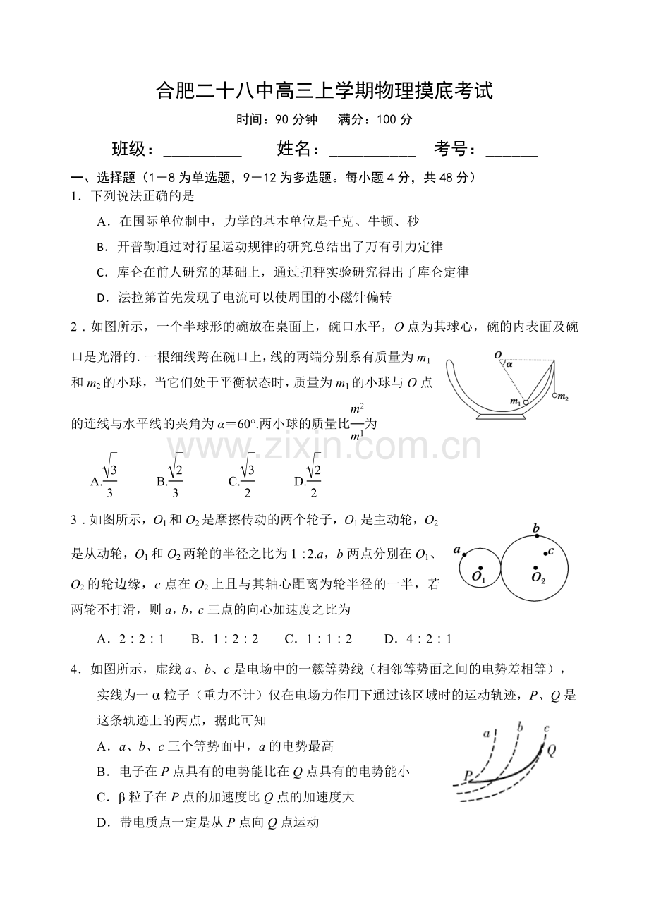 一、 选择题(1-8为单选题,9-12为多选题。每小题4分,共48分)