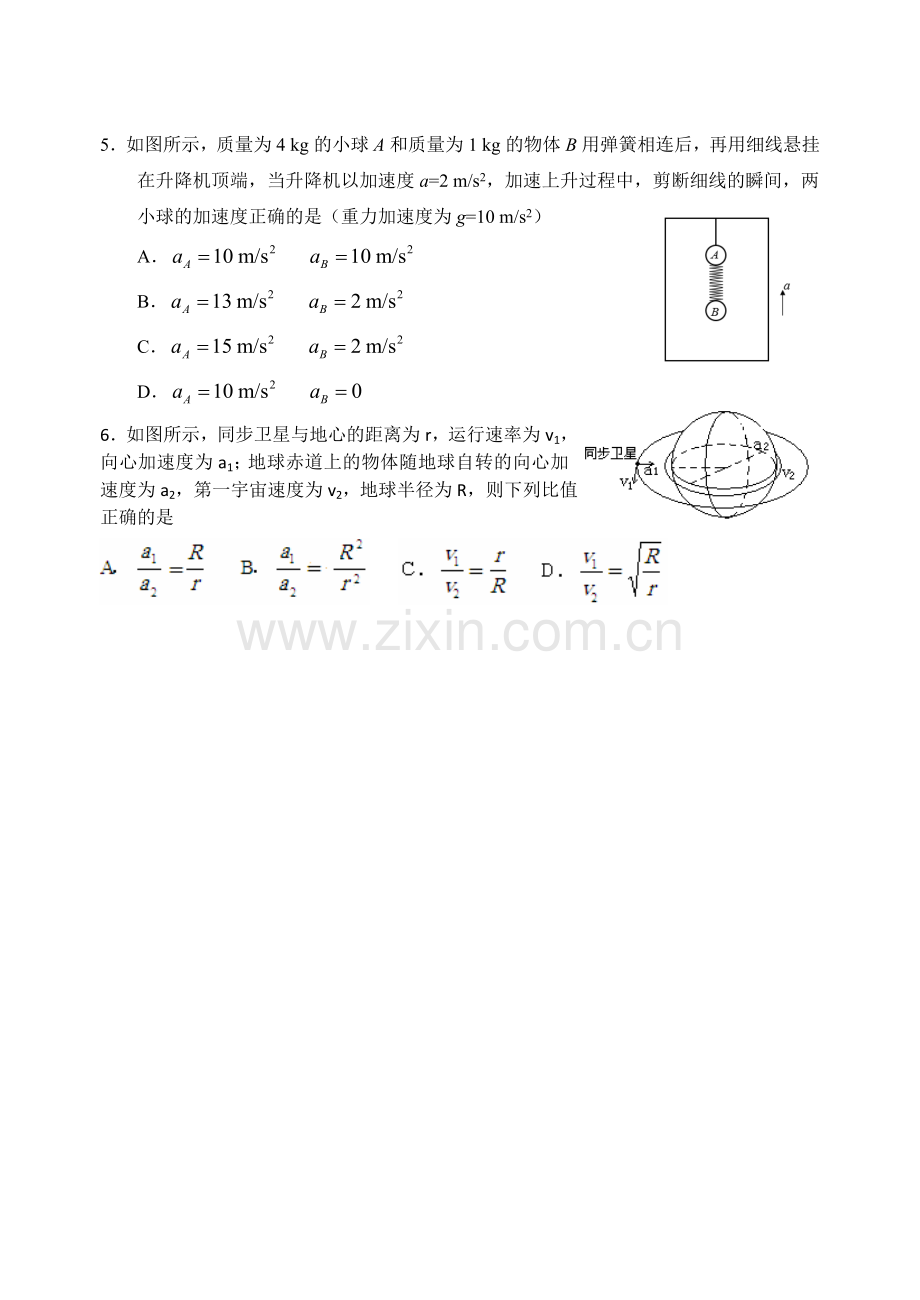 5.如图所示,质量为4 kg的小球A和质量为1 kg的物体B用弹簧相连后,再用细线悬挂在升降机顶端,当升降机以加速度a=2 m/s2,加速上升过程中,剪断细线的瞬间,两小球的加速度正确的是(重力加速度为g=10 m/s2)