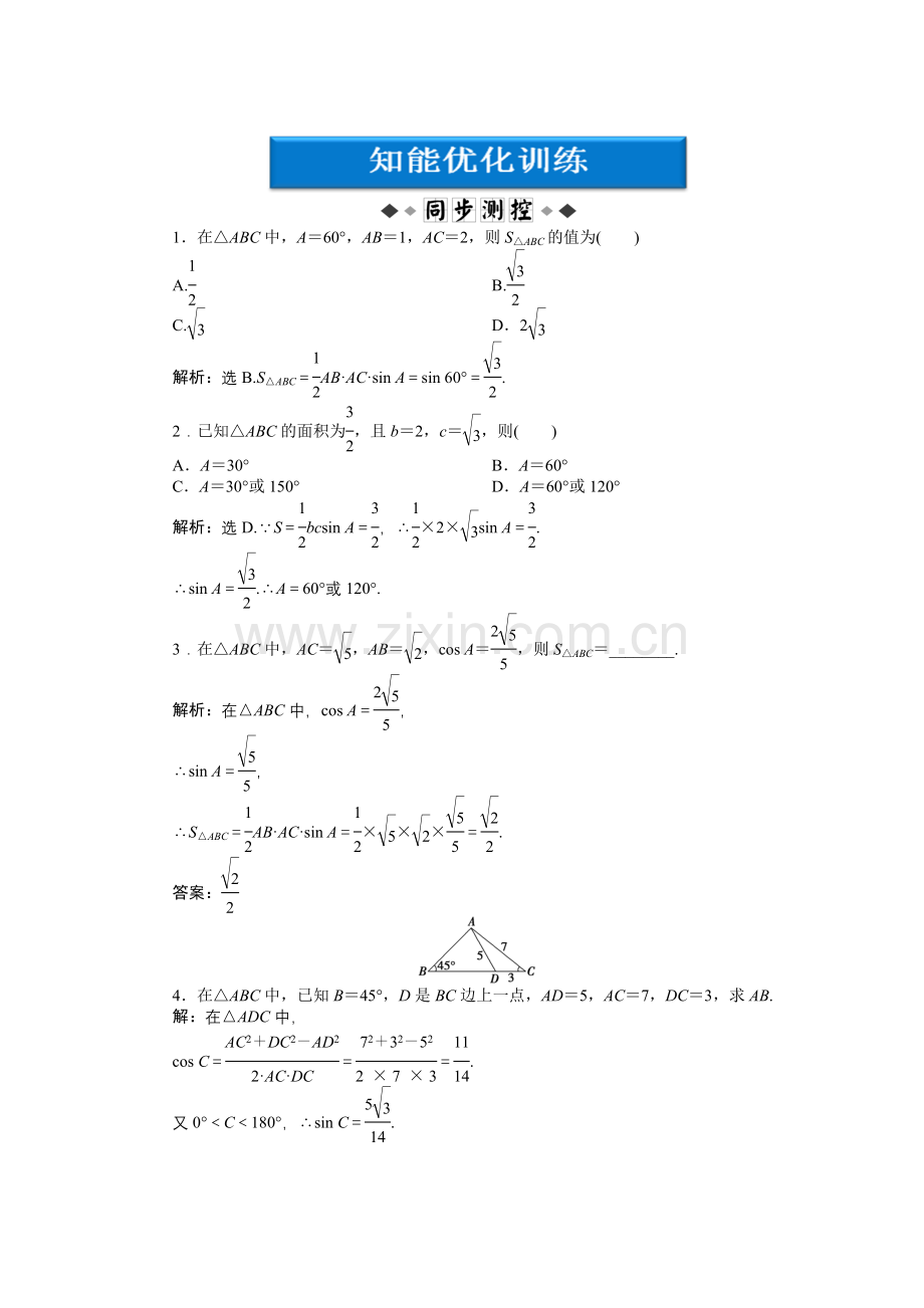 1.在△ABC中,A=60°,AB=1,AC=2,则S△ABC的值为( )