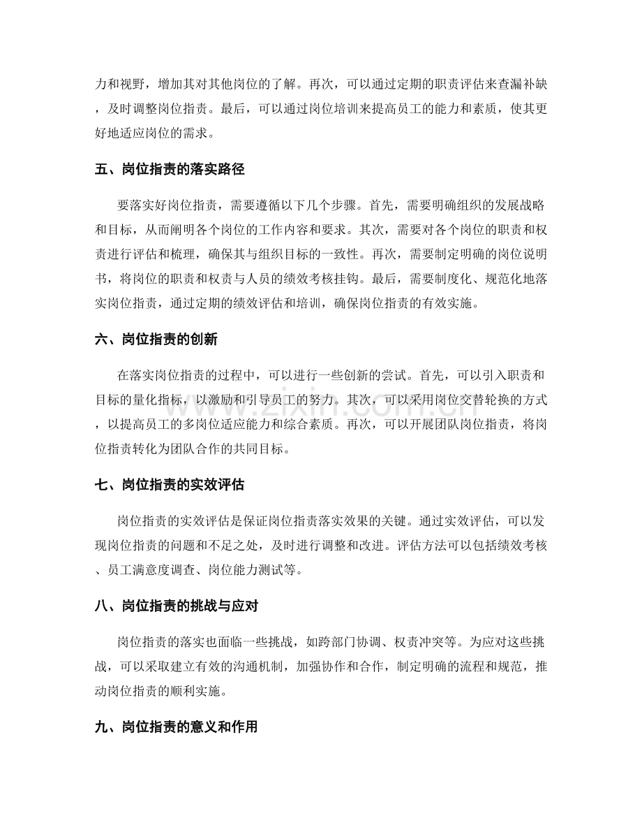 岗位指责的职责权责落实路径是一个系统工程,需要从明确职责权责的内涵、岗位指责的必要性、岗位指责的原则、岗位指责的方式、岗位指责的落实路径等多个方面进行综合考虑。只有在明确岗位指责的前提下,才能够实现企业的持续发展和员工的个人成长。