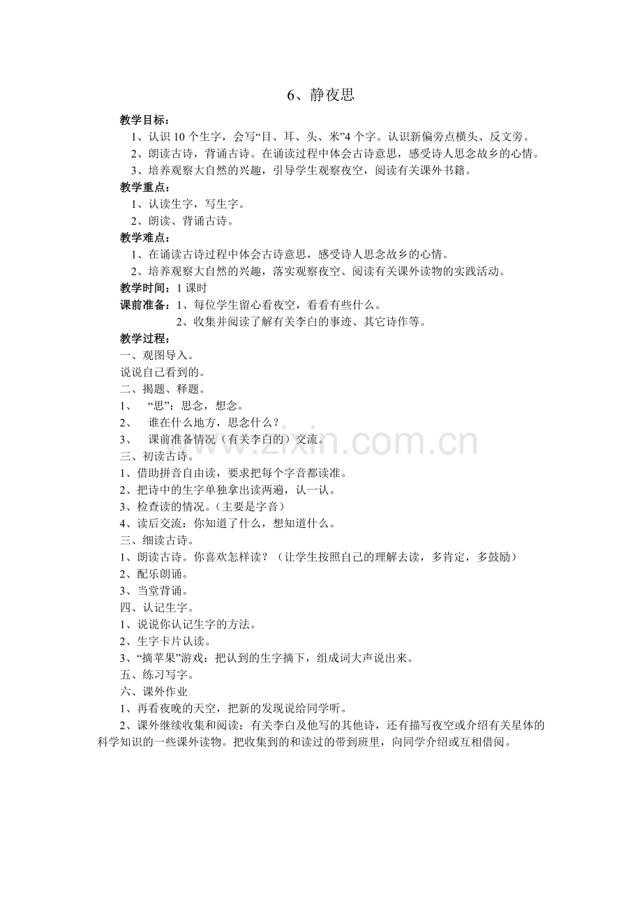 2、课外继续收集和阅读:有关李白及他写的其他诗,还有描写夜空或介绍有关星体的科学知识的一些课外读物。把收集到的和读过的带到班里,向同学介绍或互相借阅。
