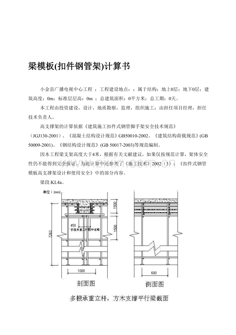 因本工程梁支架高度大于4米,根据有关文献建议,如果仅按规范计算,架体安全性仍不能得到完全保证。为此计算中还参考了《施工技术》2002(3):《扣件式钢管模板高支撑架设计和使用安全》中的部分内容。