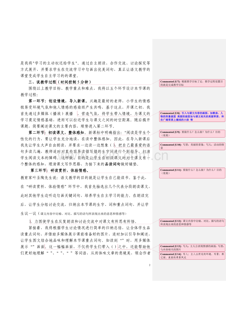 三、说教学过程根据教学目标了定,教学过程设置目的就是完成教学目标