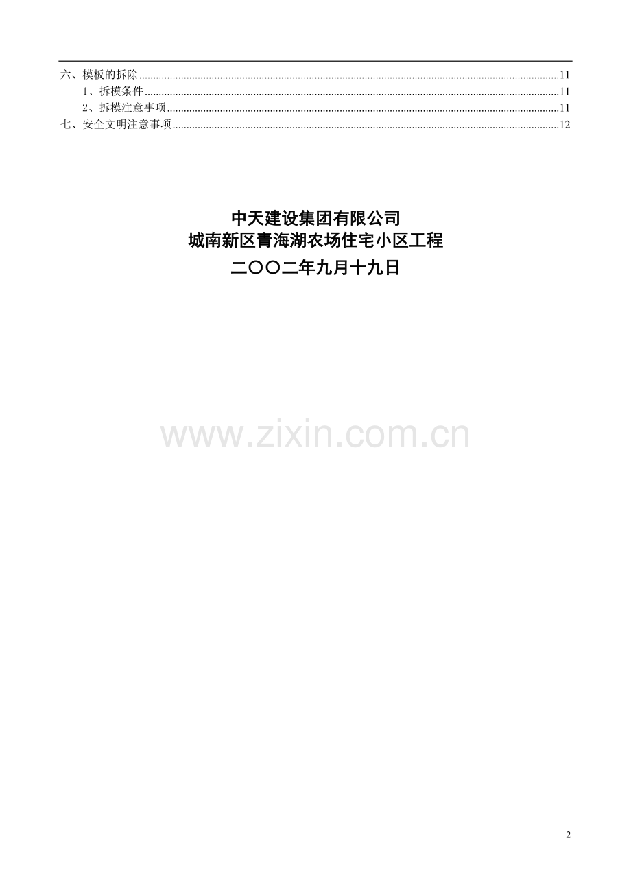 10、模板安装完毕后必须先自检后互检并经质检员验收和监理公司确认后方可进入下道工序的施工。