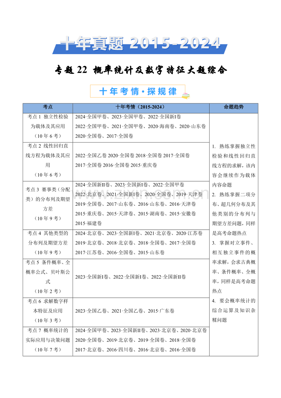 十年考情(2015-2024)