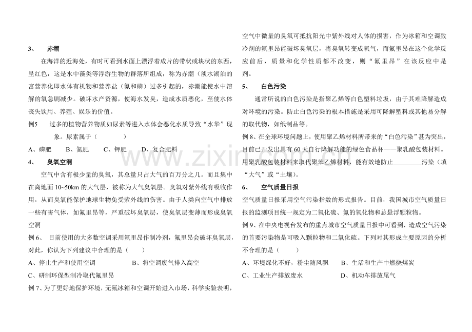 例8、在全球环境问题上,使用聚乙烯材料所带来的“白色污染”甚为突出,目前已开发出具有60天自行降解功能的绿色食品杯——聚乳酸包装材料。用聚乳酸包装材料来取代聚苯乙烯材料,能有效地防止 污染(填“大气”或“土壤)。