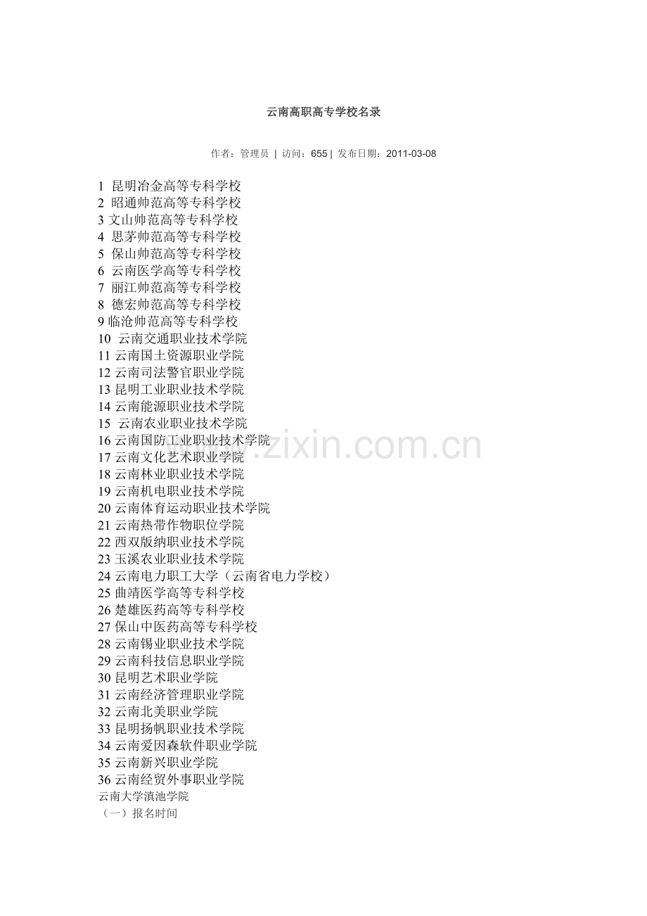 云南高职高专学校名录